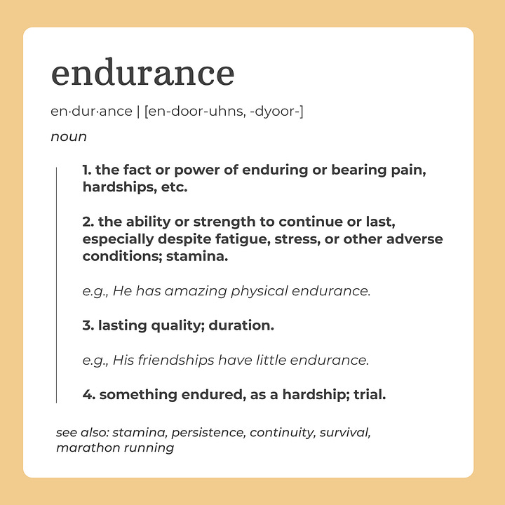 Such a great piece! I definitely think resilience is the practice that enables endurance over time. The more comfortable you get with the uncomfortable the more you can do!