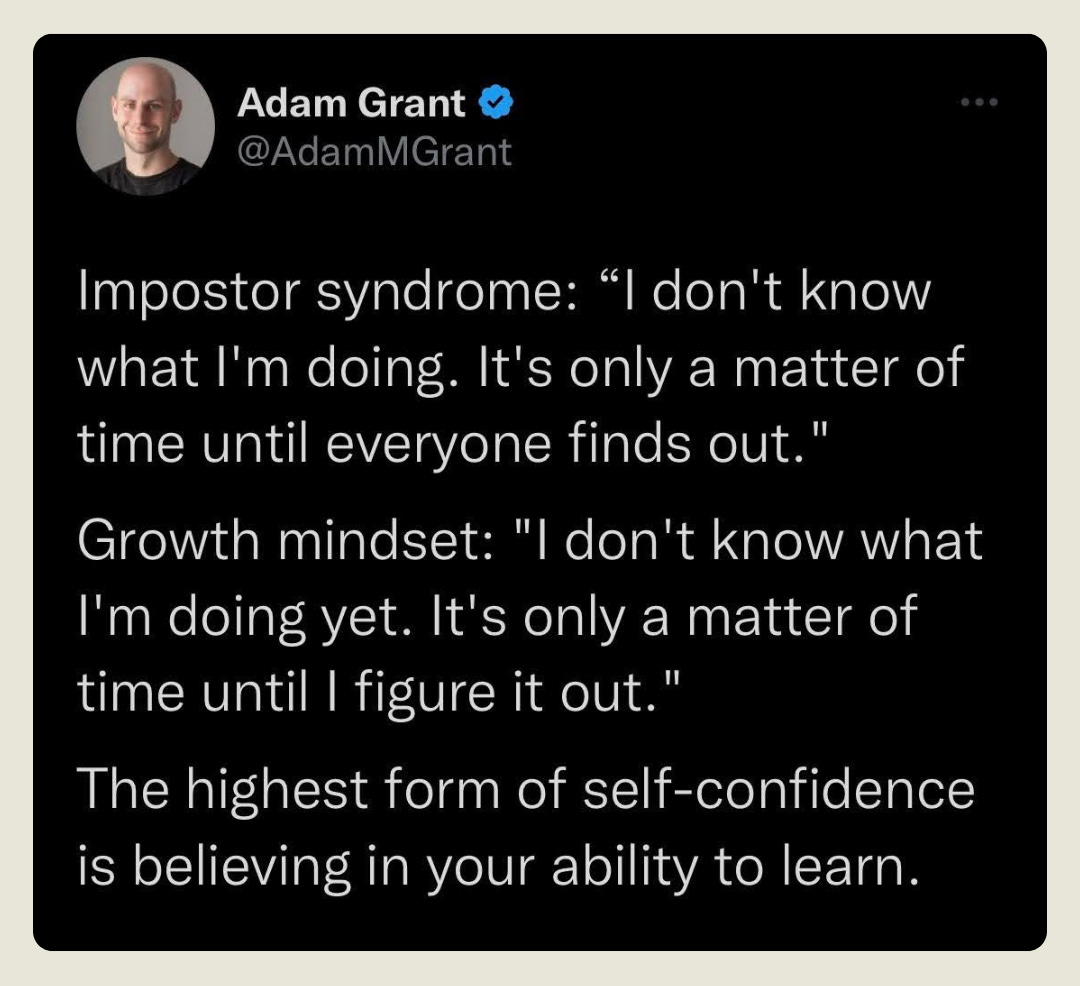 A growth mindset (i.e., the belief that your abilities, intelligence, and skills can be developed through effort, learning, and practice over time, rather than being fixed traits youāre born with)
