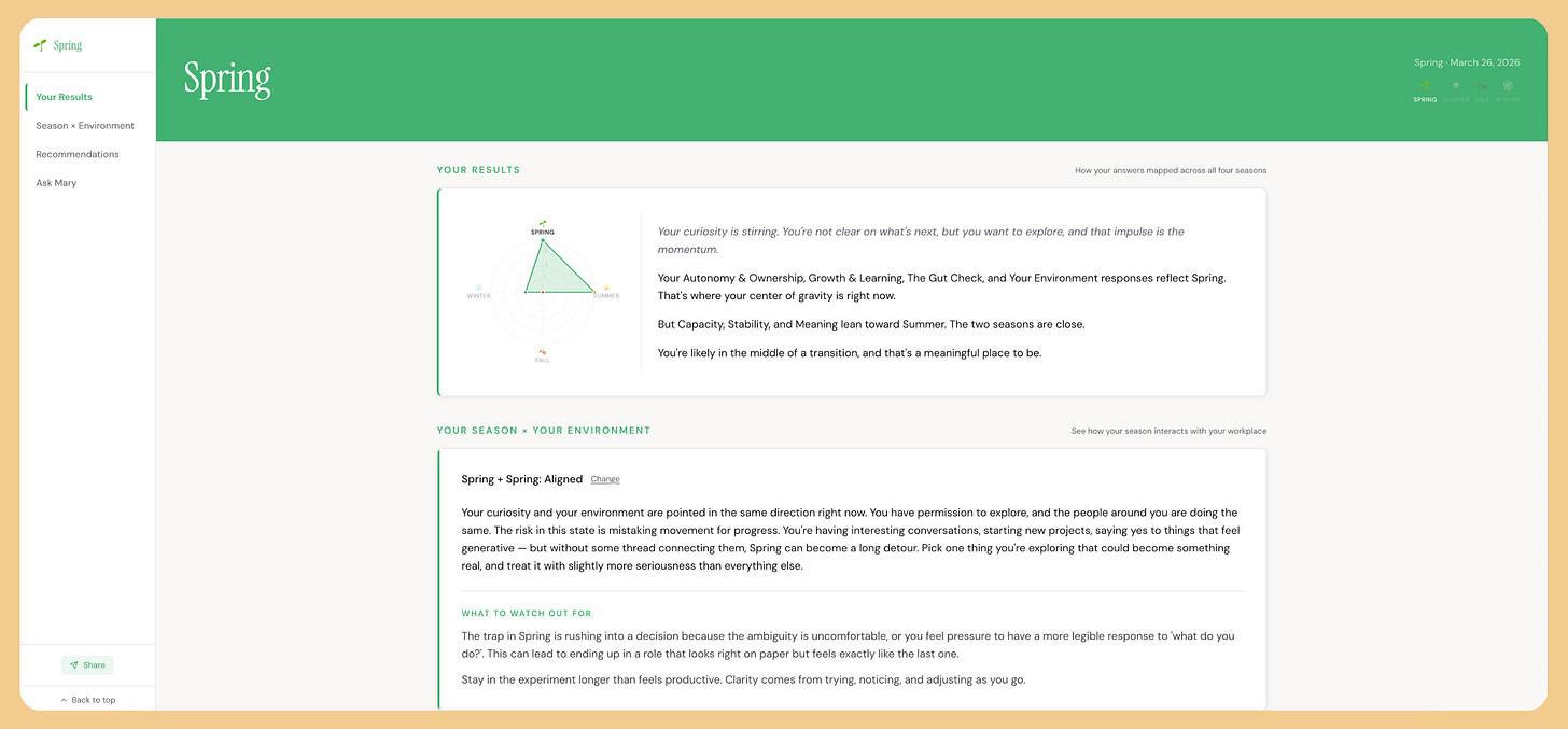 My career season results were spot-on. Pulled from What Season of Work Are You In?: